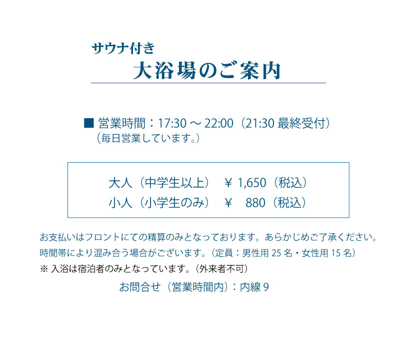 サウナ付き大浴場のご案内